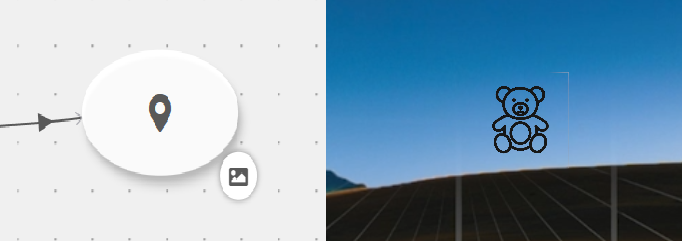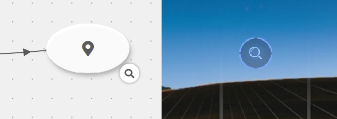 Aktion: Hinkien ist nicht als Interaktionsfeld sichtbar. Stattdessen wird in die verknüpfte Szene gewechselt, wenn Nutzende sich real hinknien bzw. den Kopf ein gutes Stück senken. Dieses Interaktionsfeld funktioniert nur mit einem VR-Headset und ist im PaneoVR Web Player ein gewöhnlicher Wegpunkt.