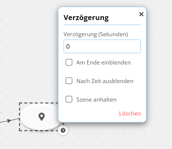 Modul: Verzögerte Auslösung startet die hinterlegte Aktion (Szene wechseln, Bild anzeigen, …) verzögert nach X Sekunden.