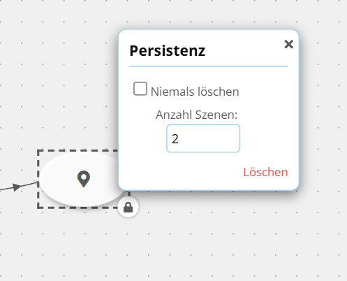 Modul: Persistenz sorgt dafür, dass das zugehörige Element beim Szenenwechsel nicht gelöscht wird. Optional kann eine Anzahl an Szenen definiert werden, über die das Element bestehen bleibt.